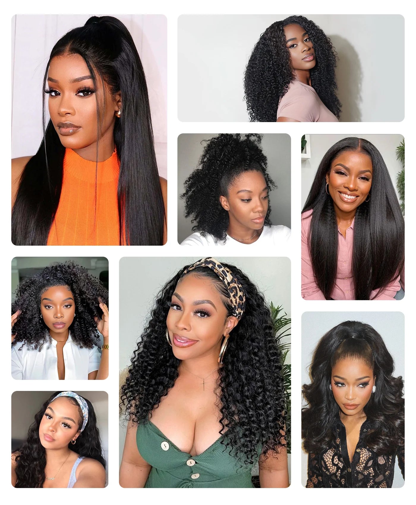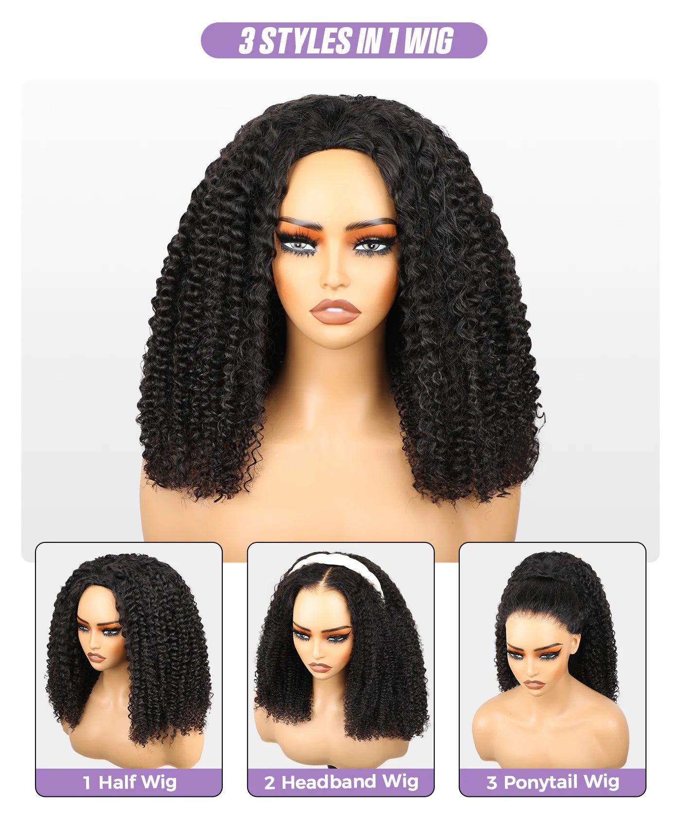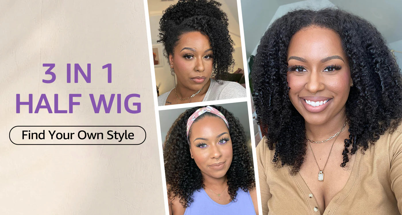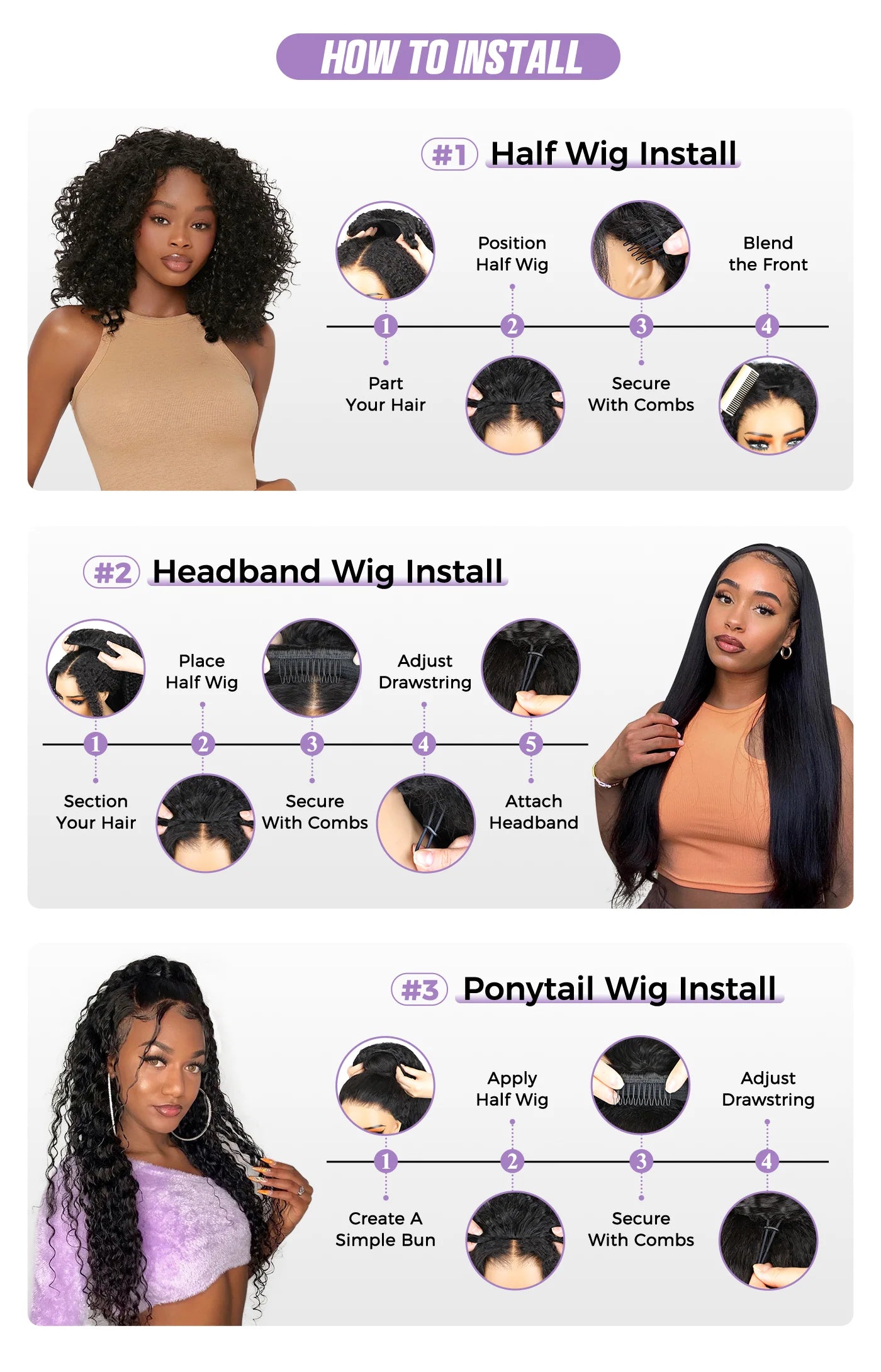 - Versatile 3-in-1 styling: wear it as a half-wig, ponytail, or with a headband.