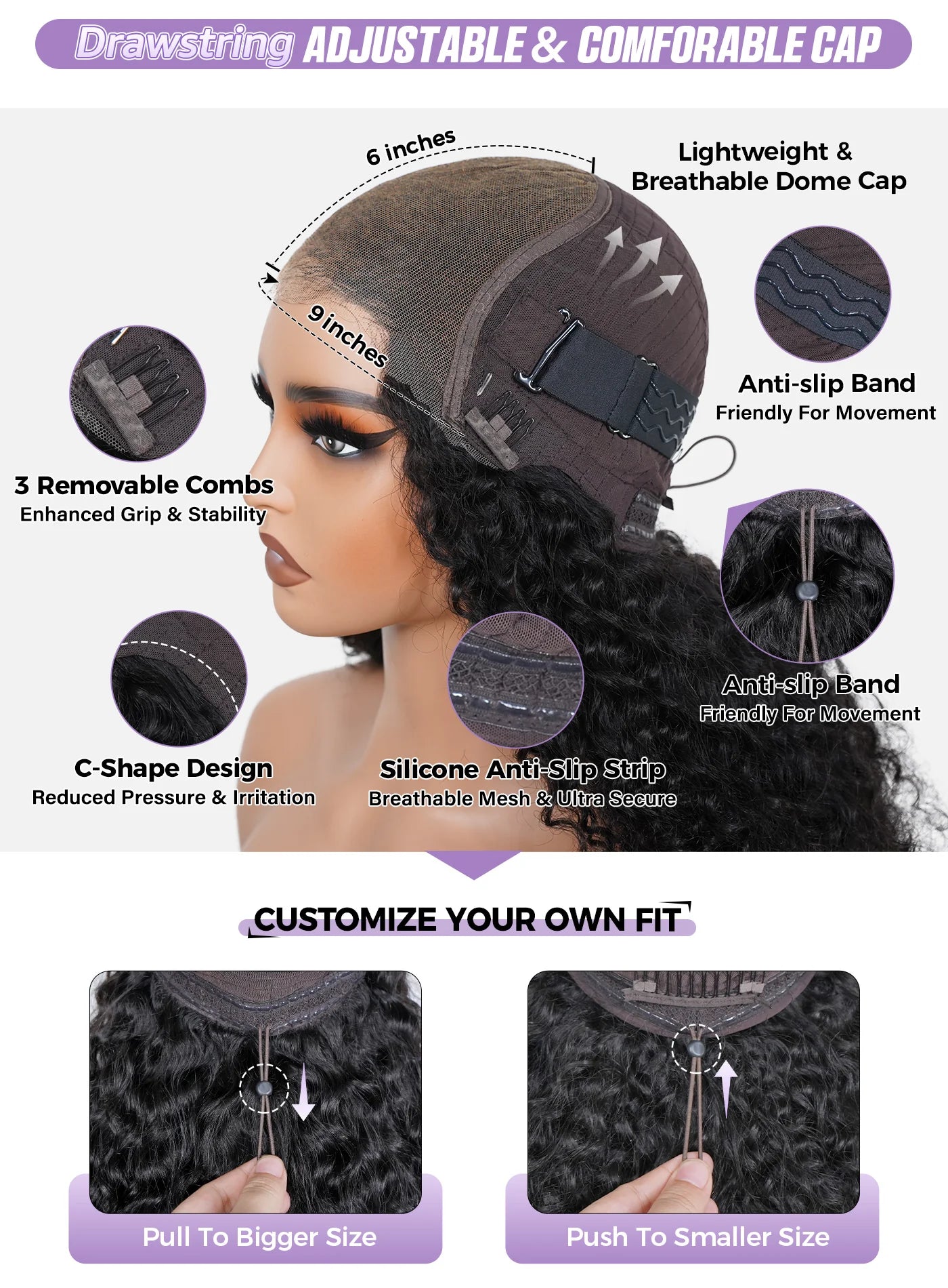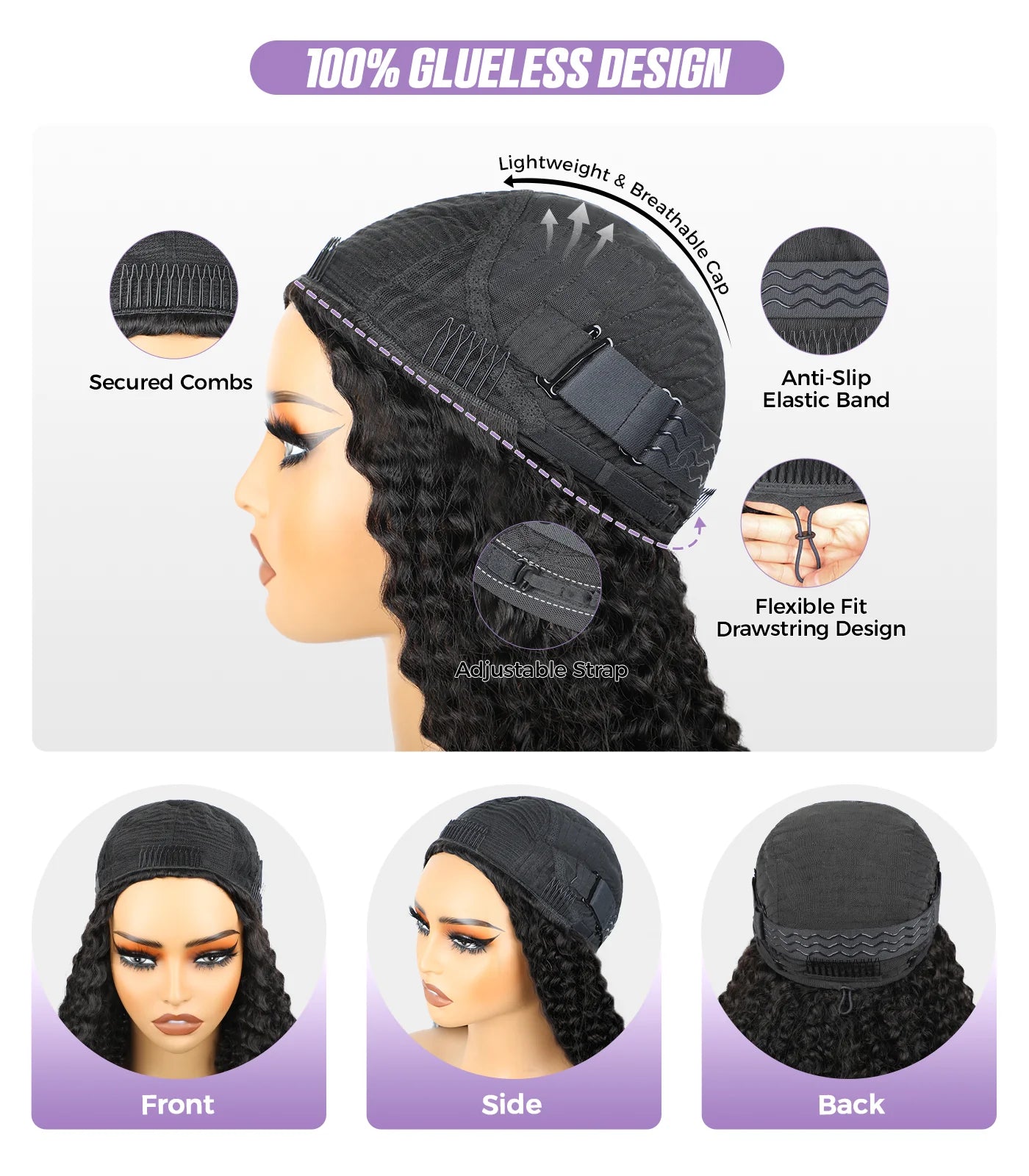 - No glue, no stress — this “glueless” wig comes with an elastic drawstring and flexible cap, so you don’t need to use any adhesives. Easy to wear, easy to remove.
