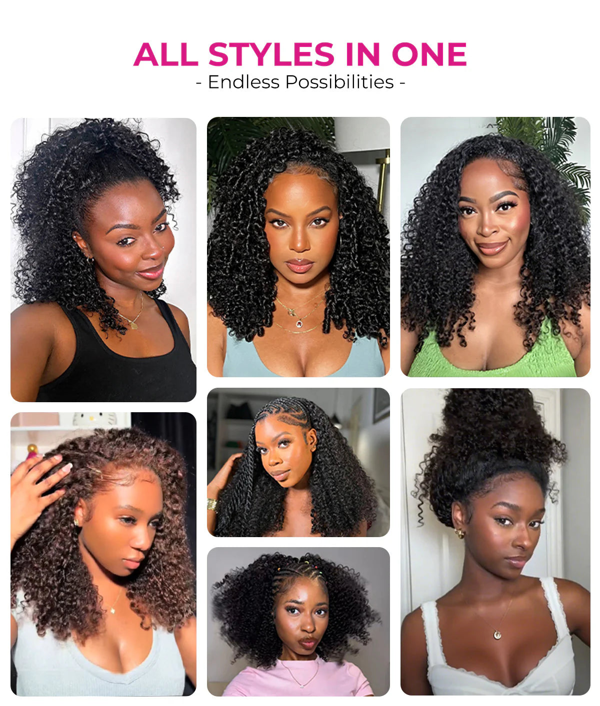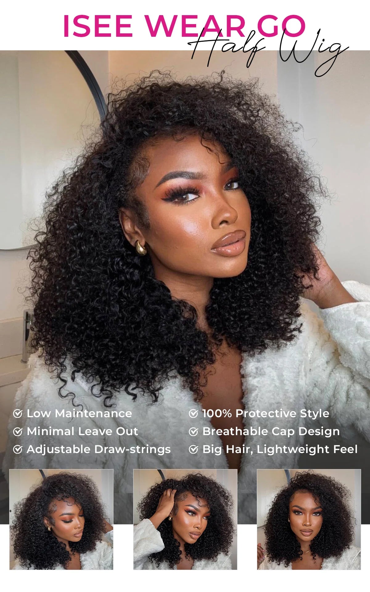 3 In 1 Half Wig | Afro Curly Flexible Fit Wear Go Half Wig With Drawstring Natural Hairline Beginner Friendly