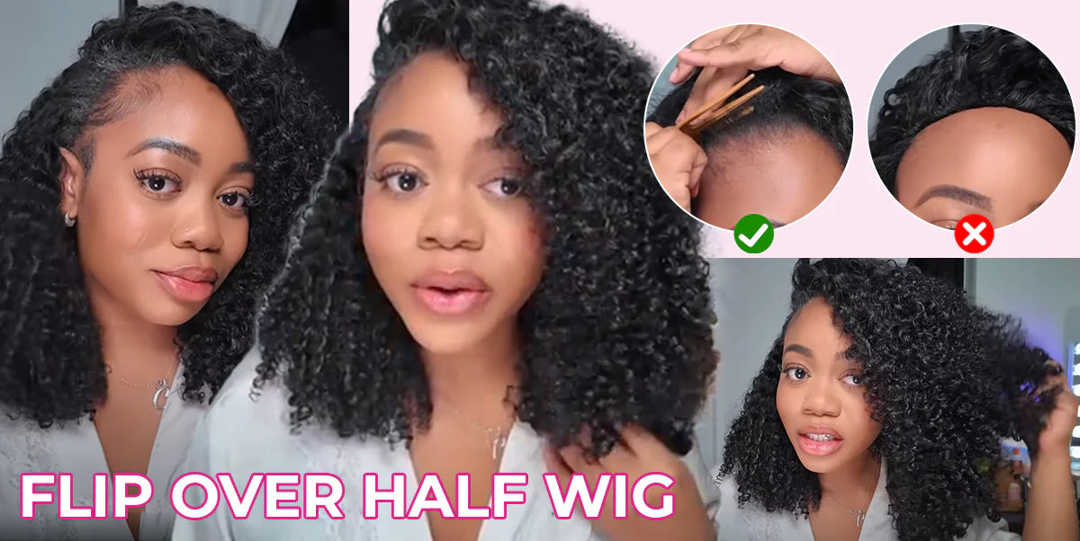Coily Curly Half Wig Seamless Kinky Curly Flip Over Wig Beginner Friendly