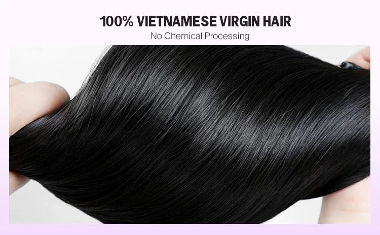 - 100% virgin human hair — soft, natural, high-quality hair that you can dye, style, and wear repeatedly while keeping shine and strength.