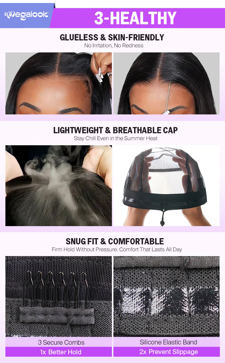 - Glueless, drawstring-ready — this wig uses a 13×6 Glueless lace frontal with drawstring cap for a secure, no-glue installation.