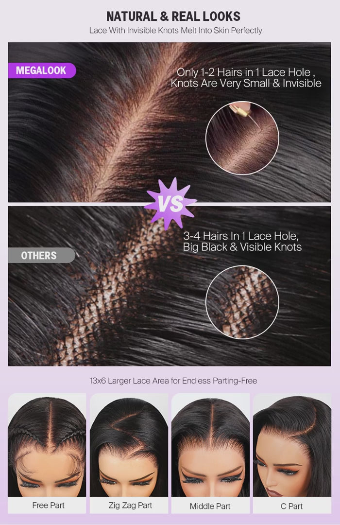 - Natural finish & realistic hairline — pre-plucked hairline, pre-cut HD lace and minimal knots give a seamless, scalp-like look straight out of the box.